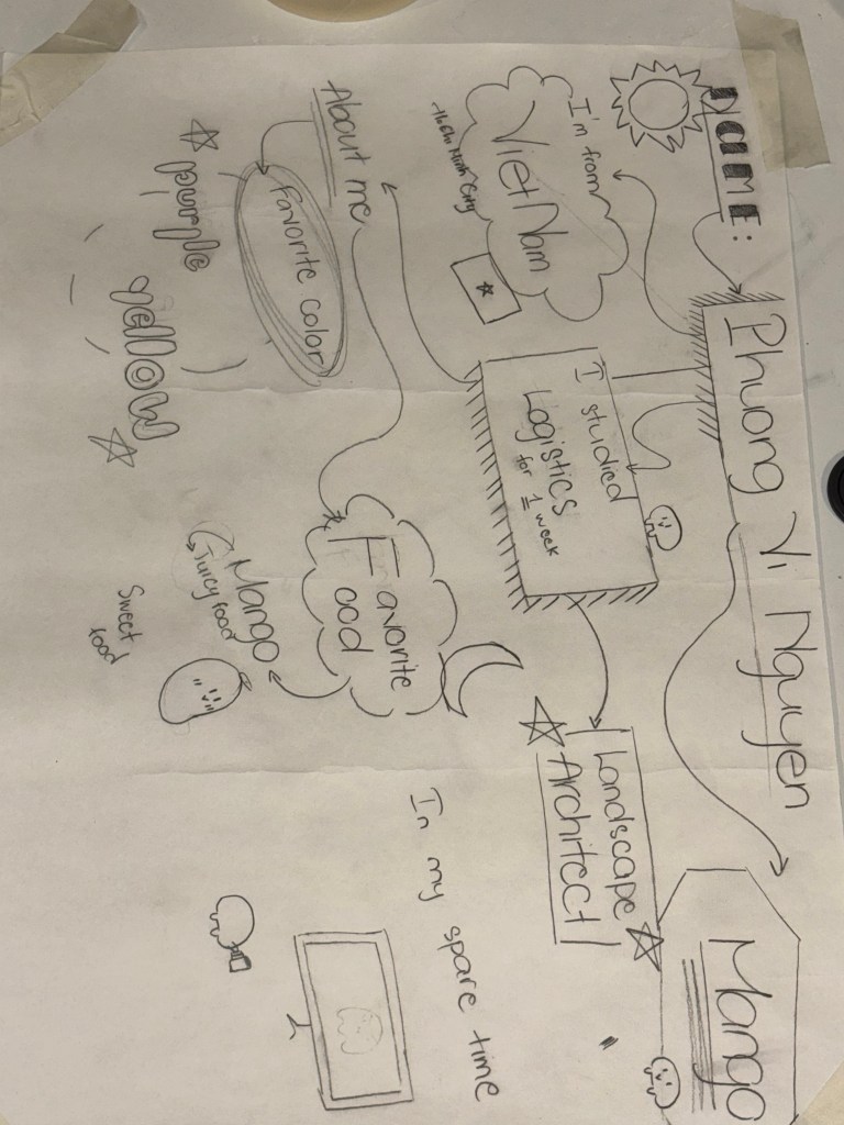 This is a mindmap to introduce my self to everyone. It is easy for me to let my classmates and the teacher know about me. The diagram started with my name, followed by arrows showing my hometown, my previous studies, my current course at BCU, my favourite food and colour. Finally, it ended with what I usually do in my free time.