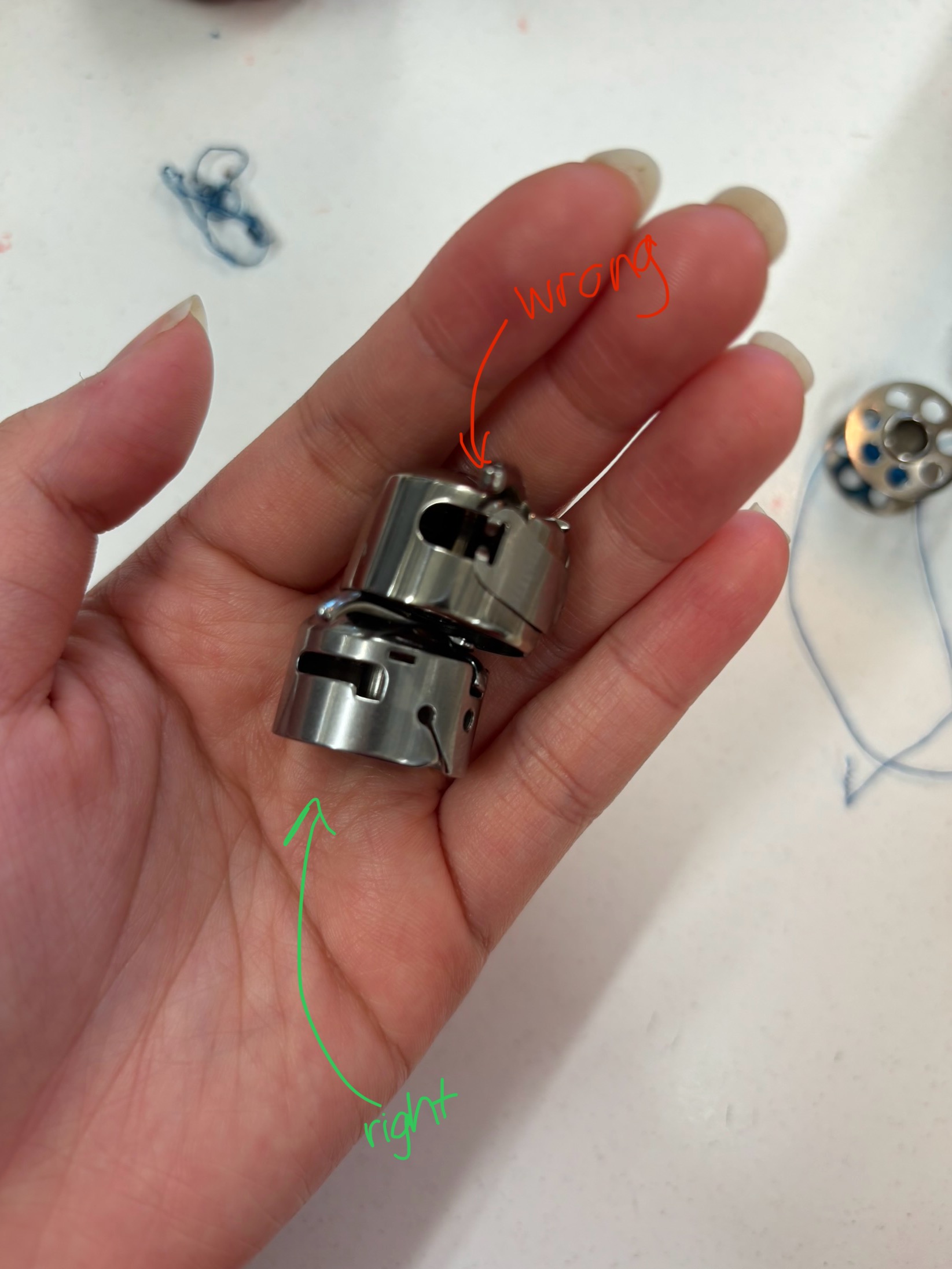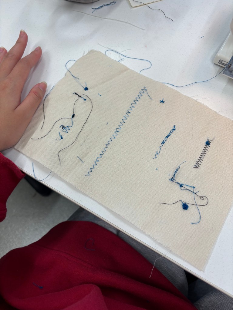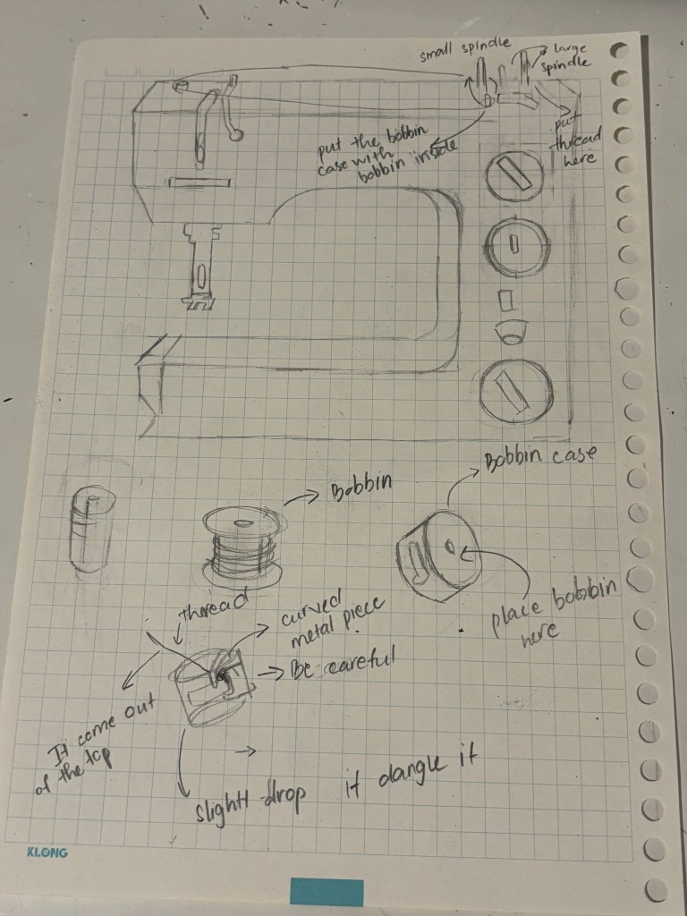 I learned about the sewing machine and how to use it. I was quite excited at first, but I kept having problems using it and I found it difficult to use. When I used the sewing machine, I was given a different bobbin case than the one Bha used and I didn’t realize until I couldn’t get it to work smoothly (the thread was stuck). Then I kept getting stuck threads and it took a lot of time to fix it, as well as waiting for the right bobbin case.
