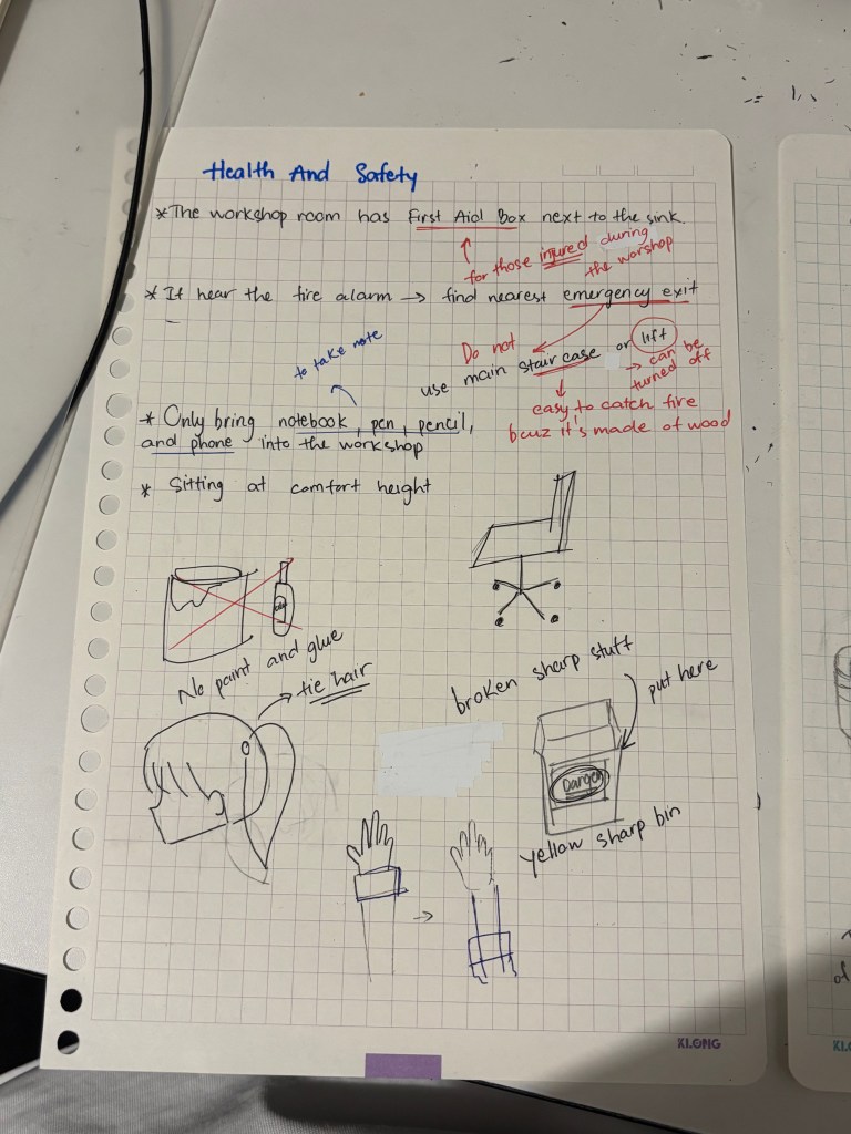 In the second week, I learned about safety when using the workshop room and escape procedures in case of fire.