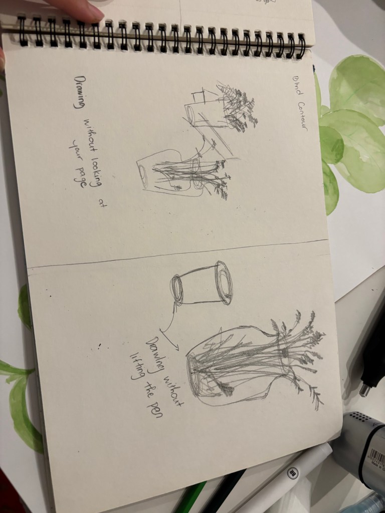 This week, I made team to dicuss, give and gain feedback about our WordPress page. After that, I praticed some drawing activities such as drawing without looking at page, drawing without lifting the pencil or using left hand to draw with different time intervals (2′, 1′ and 30s).