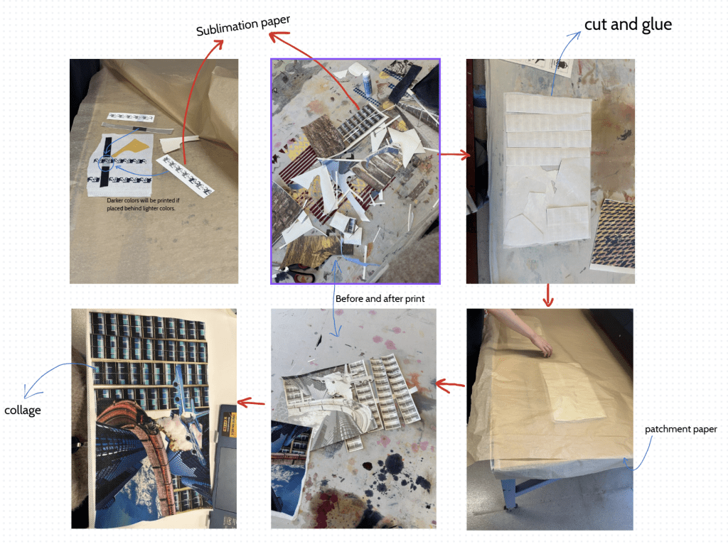 I made a collage piece of work, it is pictures of modern buildings and vehicles (planes and trains).