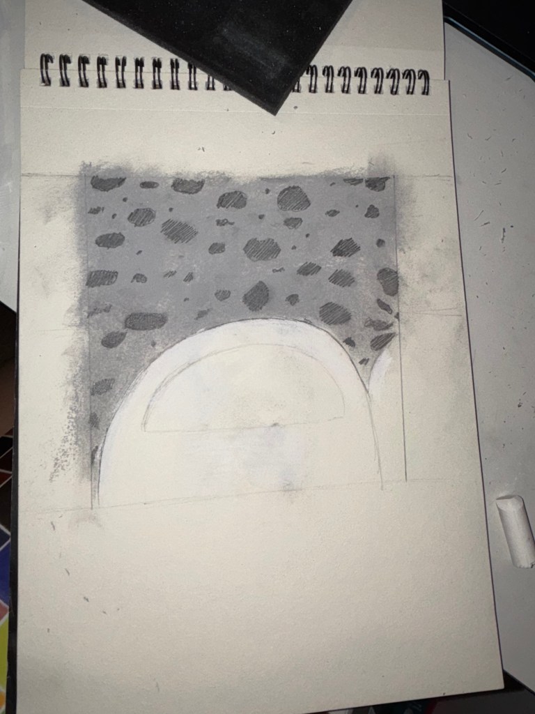 It was really hard to depict the gravel parts on the surface of the road, I tried many ways but still couldn’t get better. I realized that the sharpness of the details should have been drawn more meticulously, and should have used more pencil colors instead of the soft pastels I used. I’m still having trouble using soft pastels.