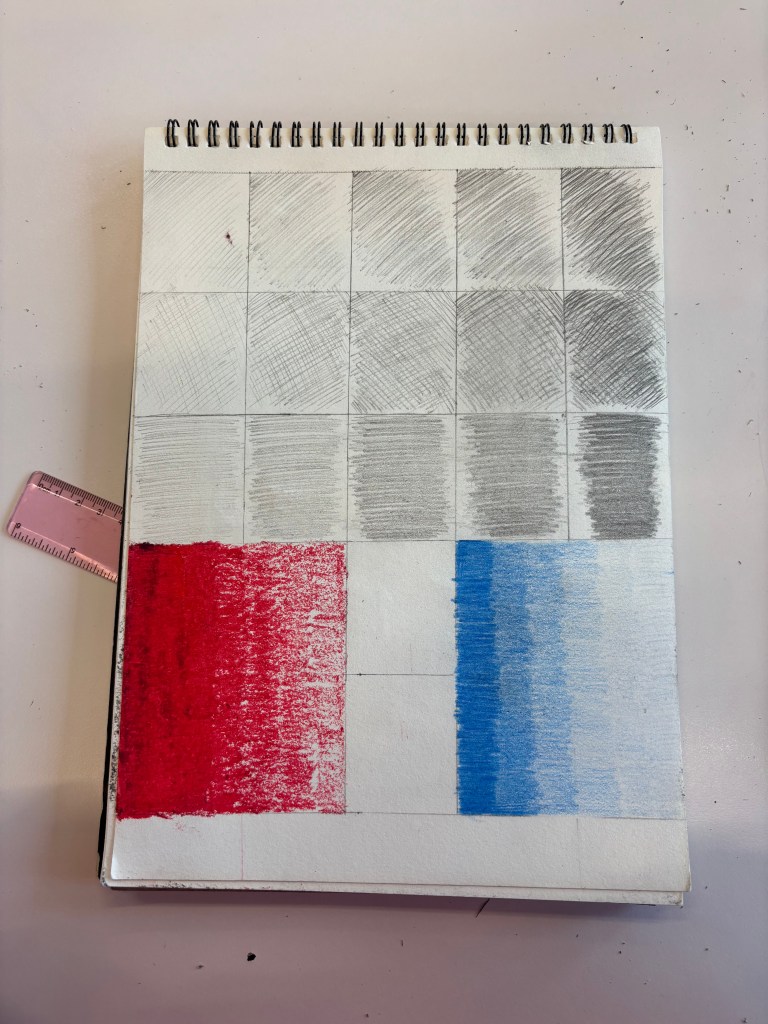 This activity is about shading and tone, I have demonstrated using different pencils to create different shades from dark to light. In addition, using oil pastels and colored pencils to create different shades from dark to light.