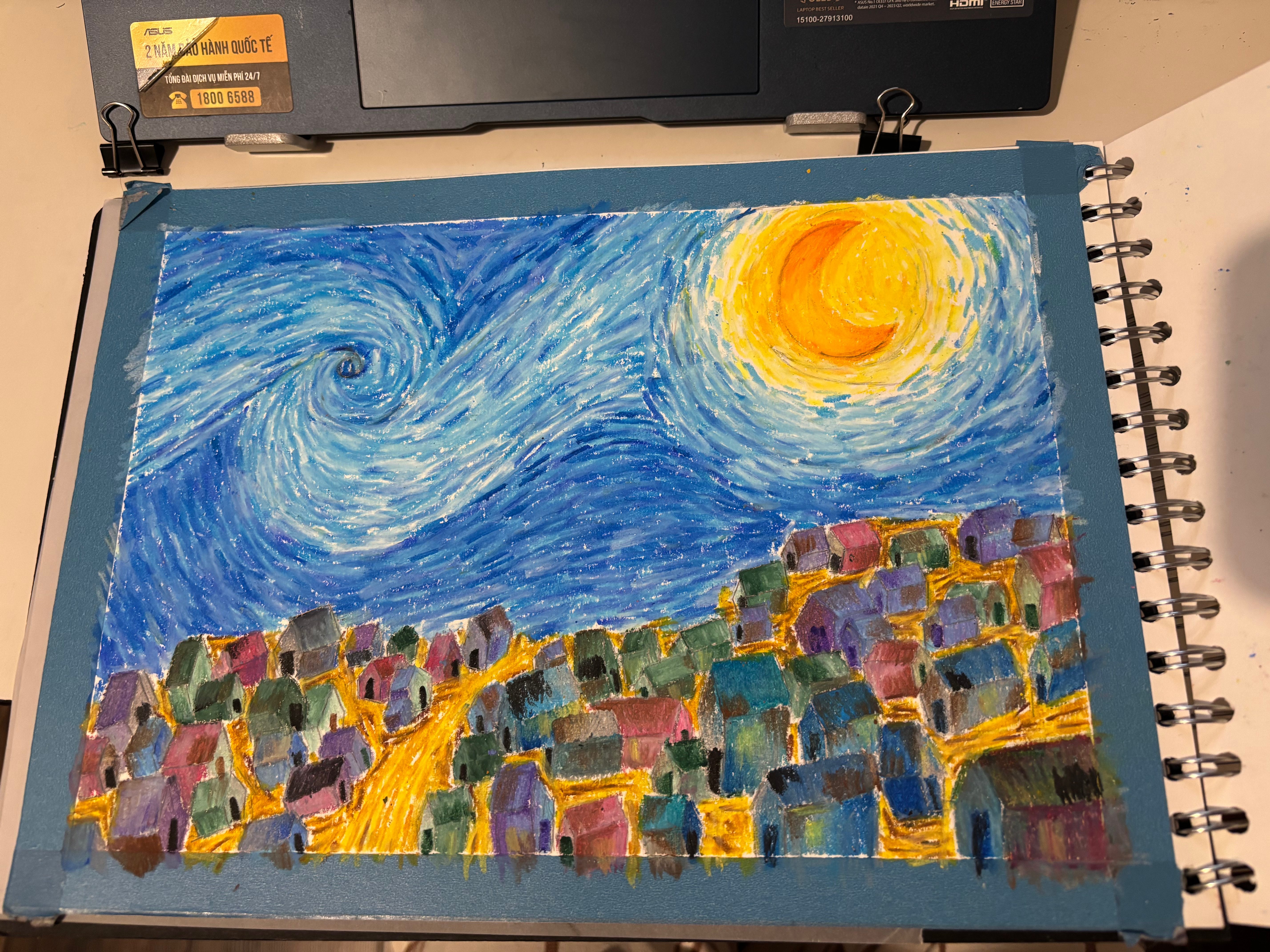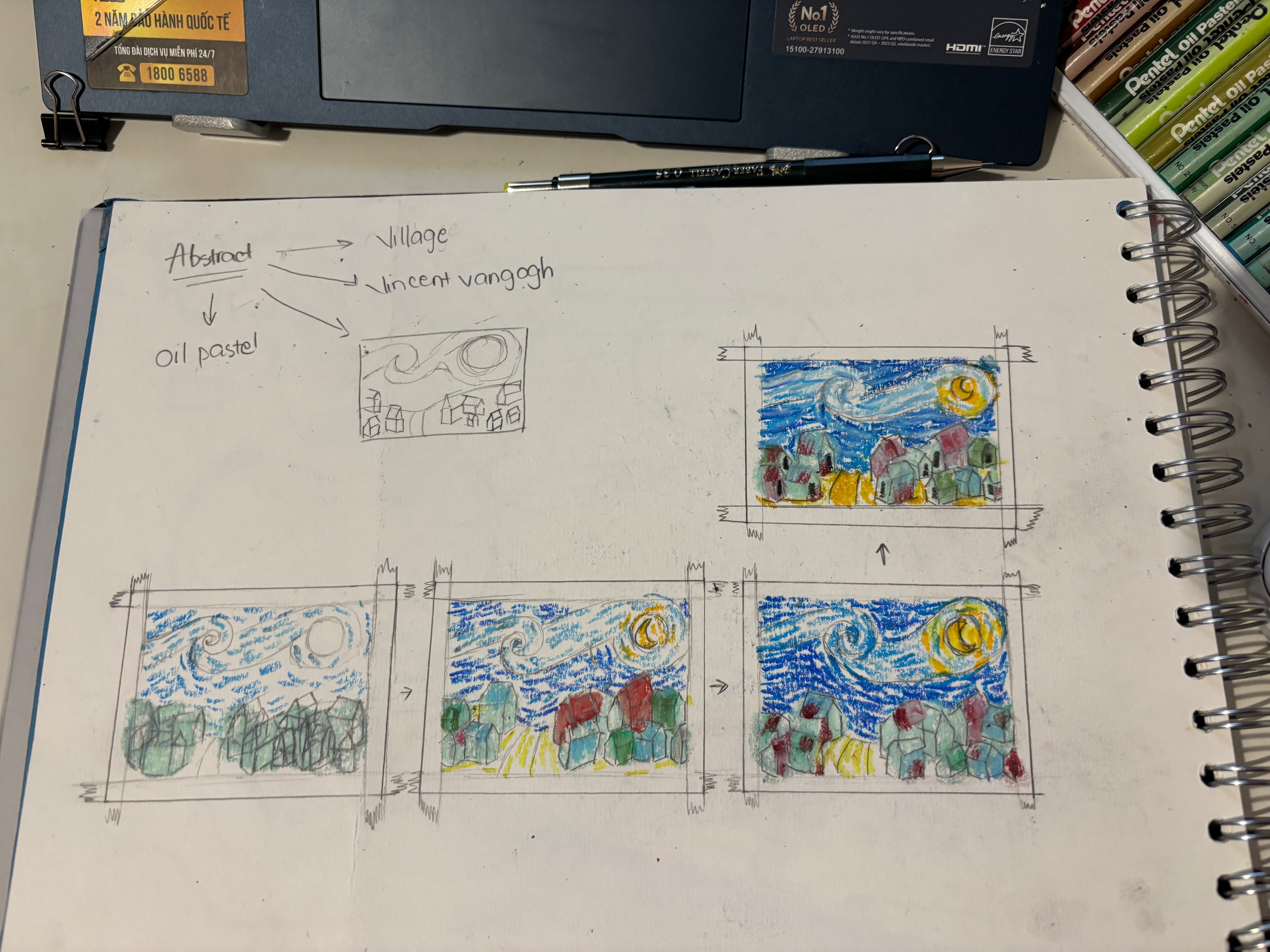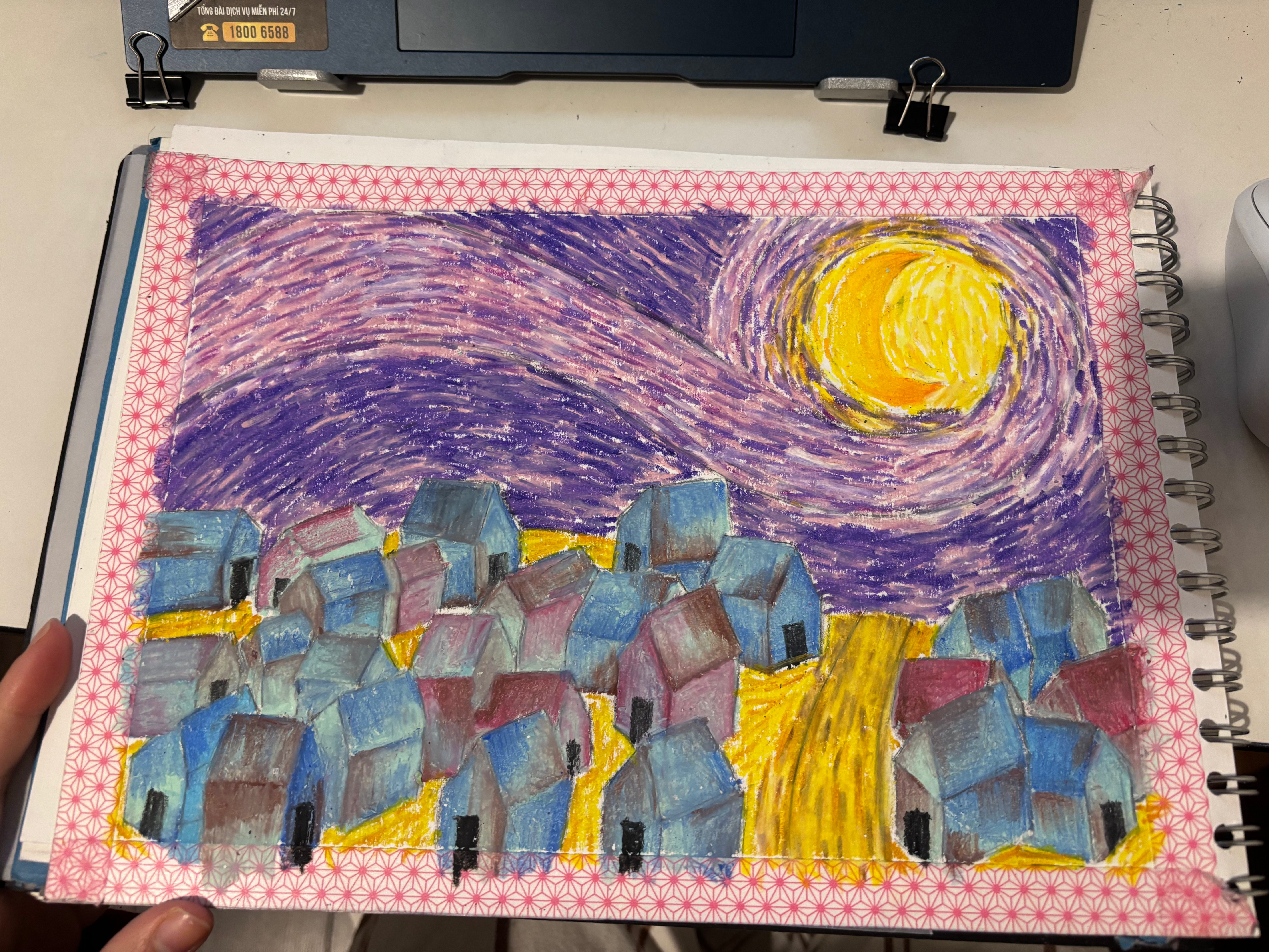For using oil pastels, I made 2 piece of work inspired by Vangogh, I really love Vangogh’s style.