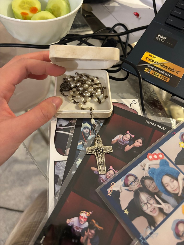 My necklace was a gift from my mother before I went to study abroad. Since it was my first time living away from home, she gave it to me as a good luck charm. It’s a Christian necklace because my family is Christian. My mother owned it for a long time and passed it down to me.