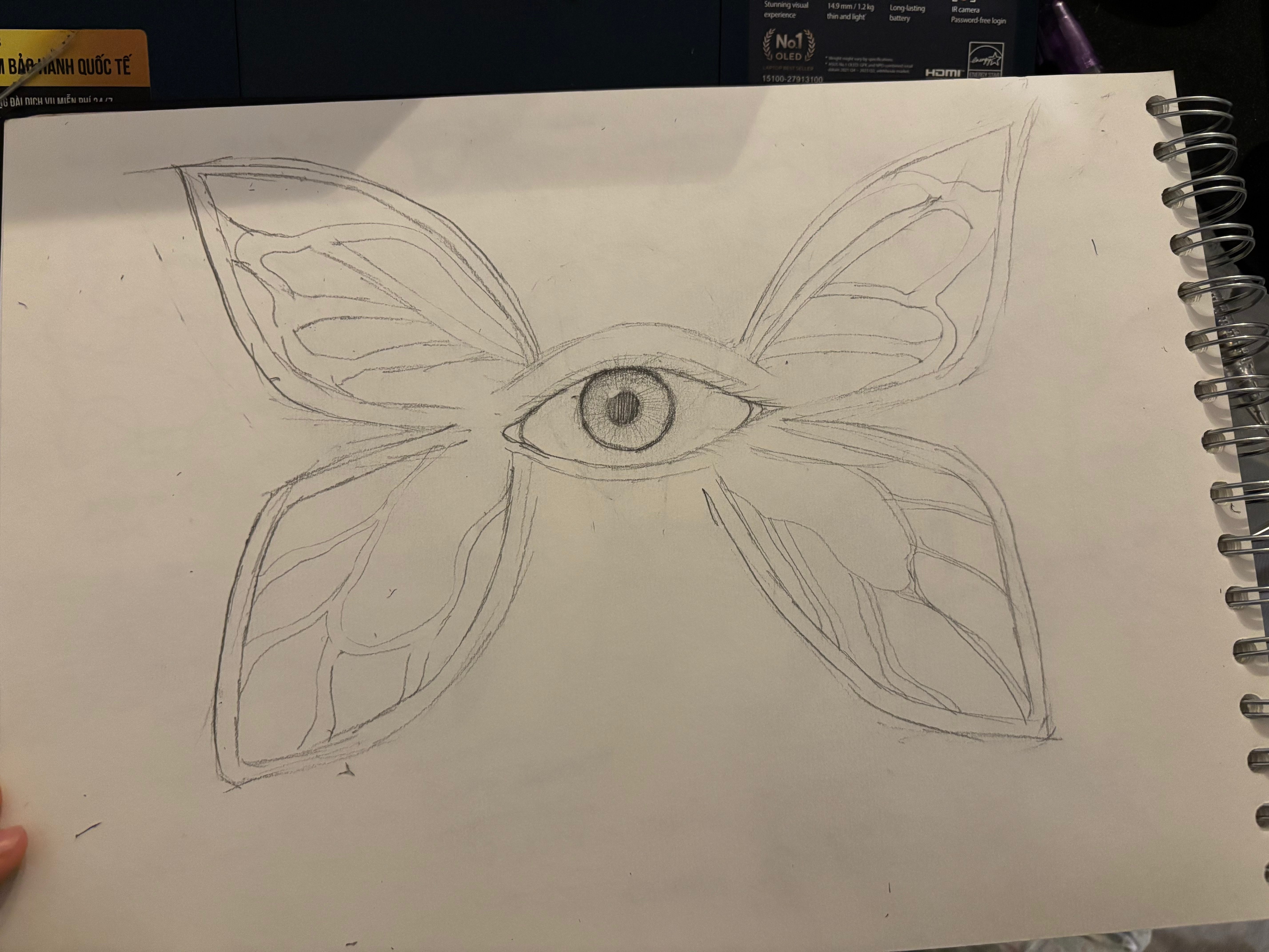 For my artwork, I drew an eye attached to a pair of butterfly wings, a pair of bright, open eyes. Butterflies begin as caterpillars, go through a dark cocoon phase before emerging and flying, and the eyes can represent perspective or knowledge. By combining them, I wanted to convey an image symbolizing a new perspective, an awakening after a long period of suppression or darkness. It’s like finding a clearer perspective after a major event.