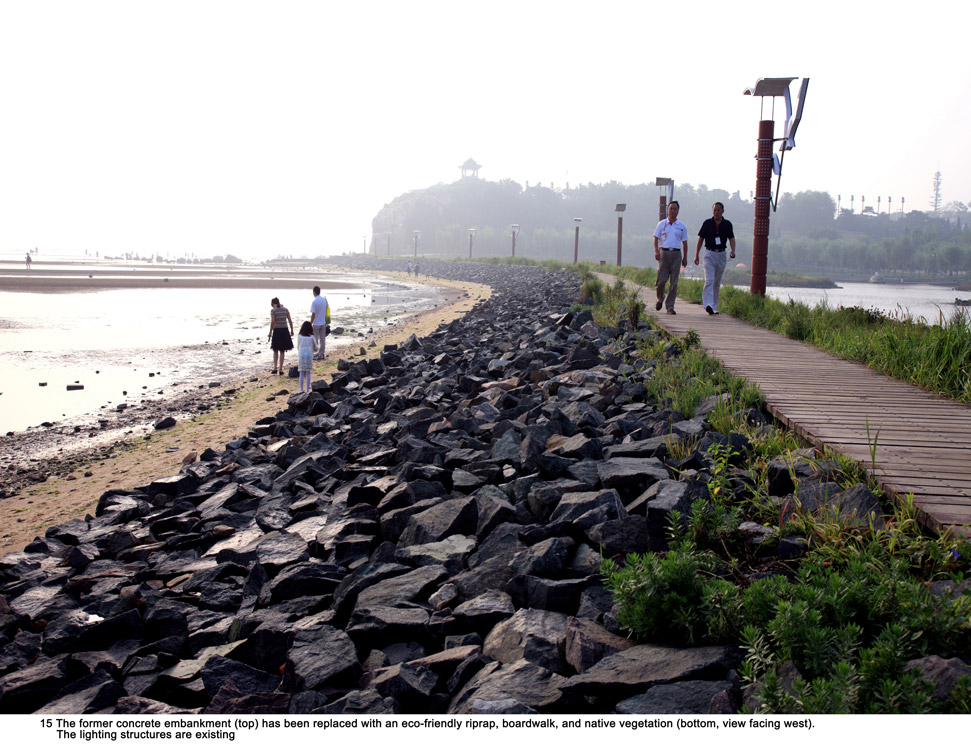 Especially, the old concrete wave barrier was renovated from not responding both ecological and aesthetical factors to meeting the requirements by using environmentally friendly rip-rap stone and native vegetation. This helped to decrease the coastal erosion and land degradation and also contribute to the local ecological restoration of the surrounding environment. Overall, this is a highly resilient design which made a strong impression by solving the problems of coastal erosion and degradation without losing aesthetic value.