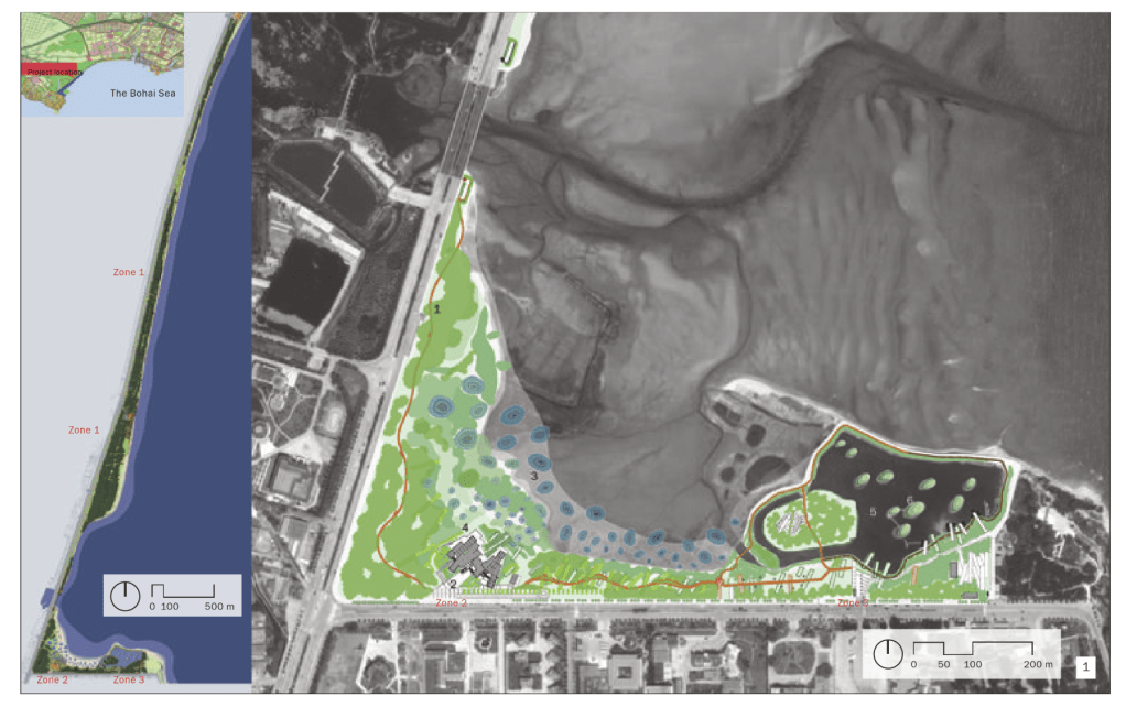 The project area is located on the Bohai Sea coast, a region that suffered severe erosion, degraded vegetation, and was littered with waste because of unplanned development activities in the past (Landezine, 2012).