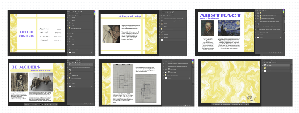 This week, I edited my portfolio in Indesign, Photoshop and Canva. My portfolio have 24 pages (included front and back cover).