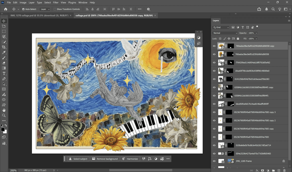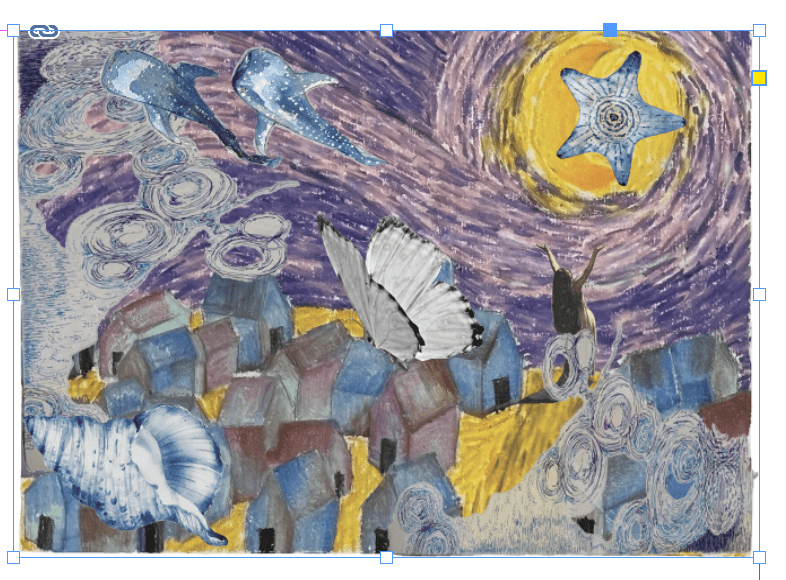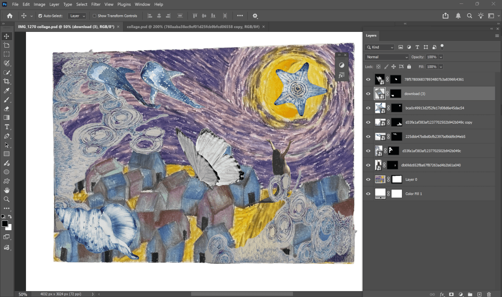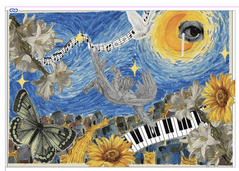 Especially, I added a digital collage in my final outcome. I pick some images in the Internet and remove their background, then I add it in my abstract work.