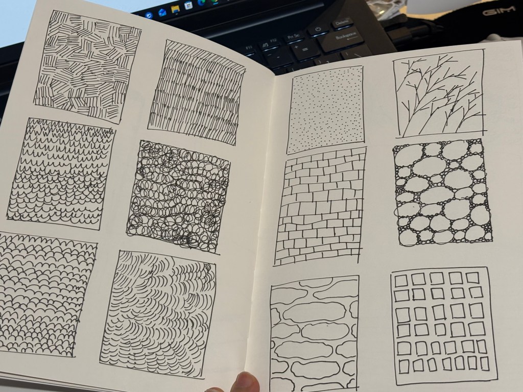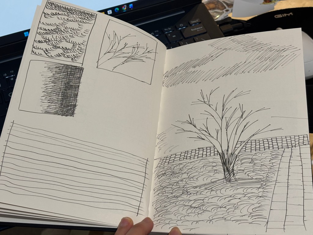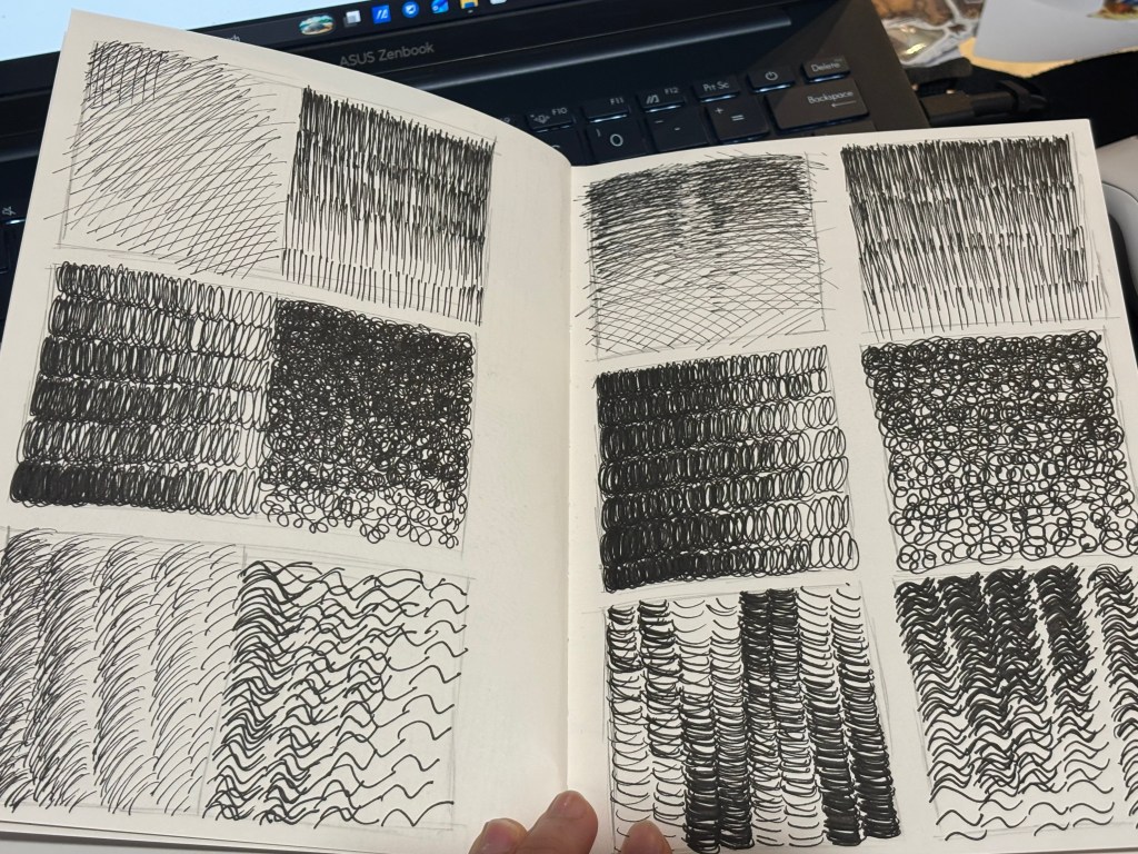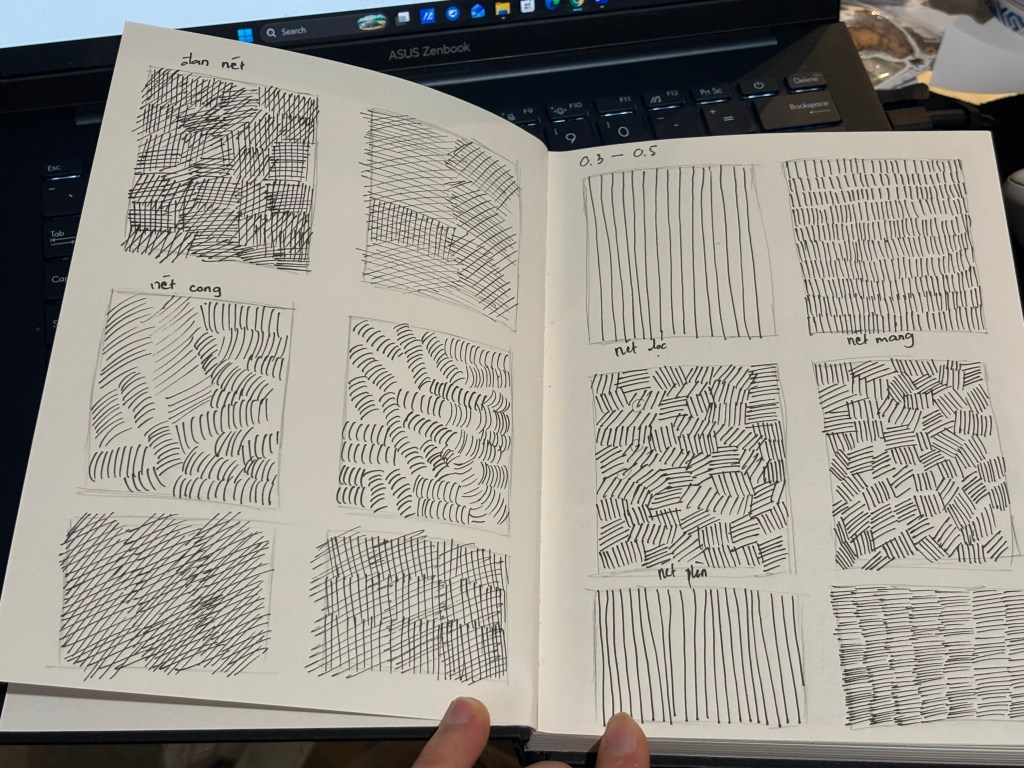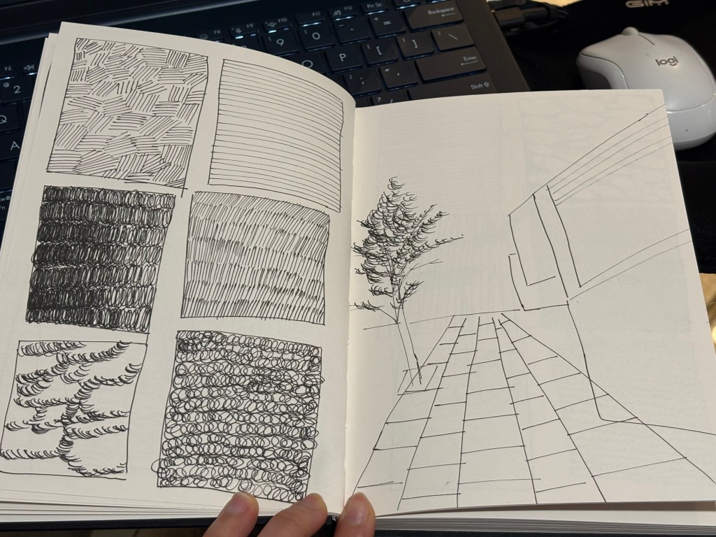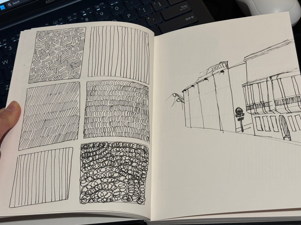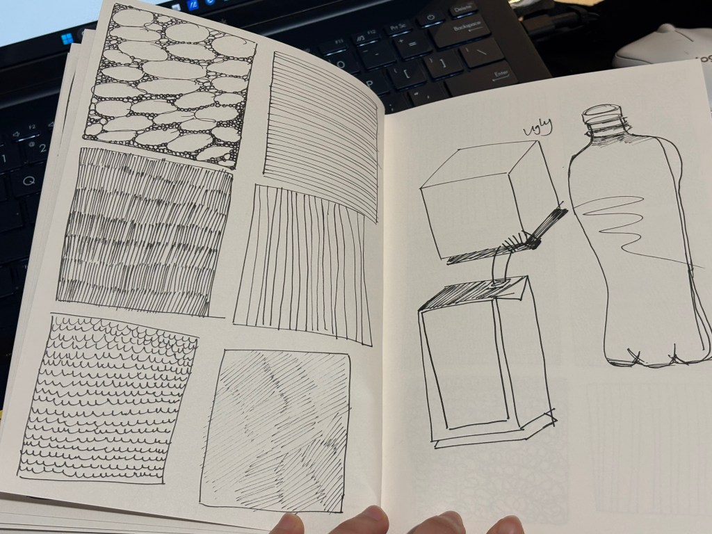 These are my sketching exercises, which I started doing in week 4. I’ve been practicing stroke exercises based on the book I’ve been using this week, and it’s not as good as I thought it would be. Practicing strokes helps my hand get used to it when I start sketching, and this helps me sketch faster and generate ideas more quickly. Since I am just starting out, my strokes were not perfect yet, but with more practice, I will become more proficient at quick sketching.