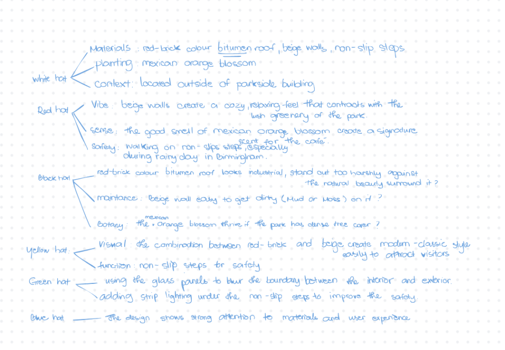 I used 6 hats thinking for my project on my Art Workshop.